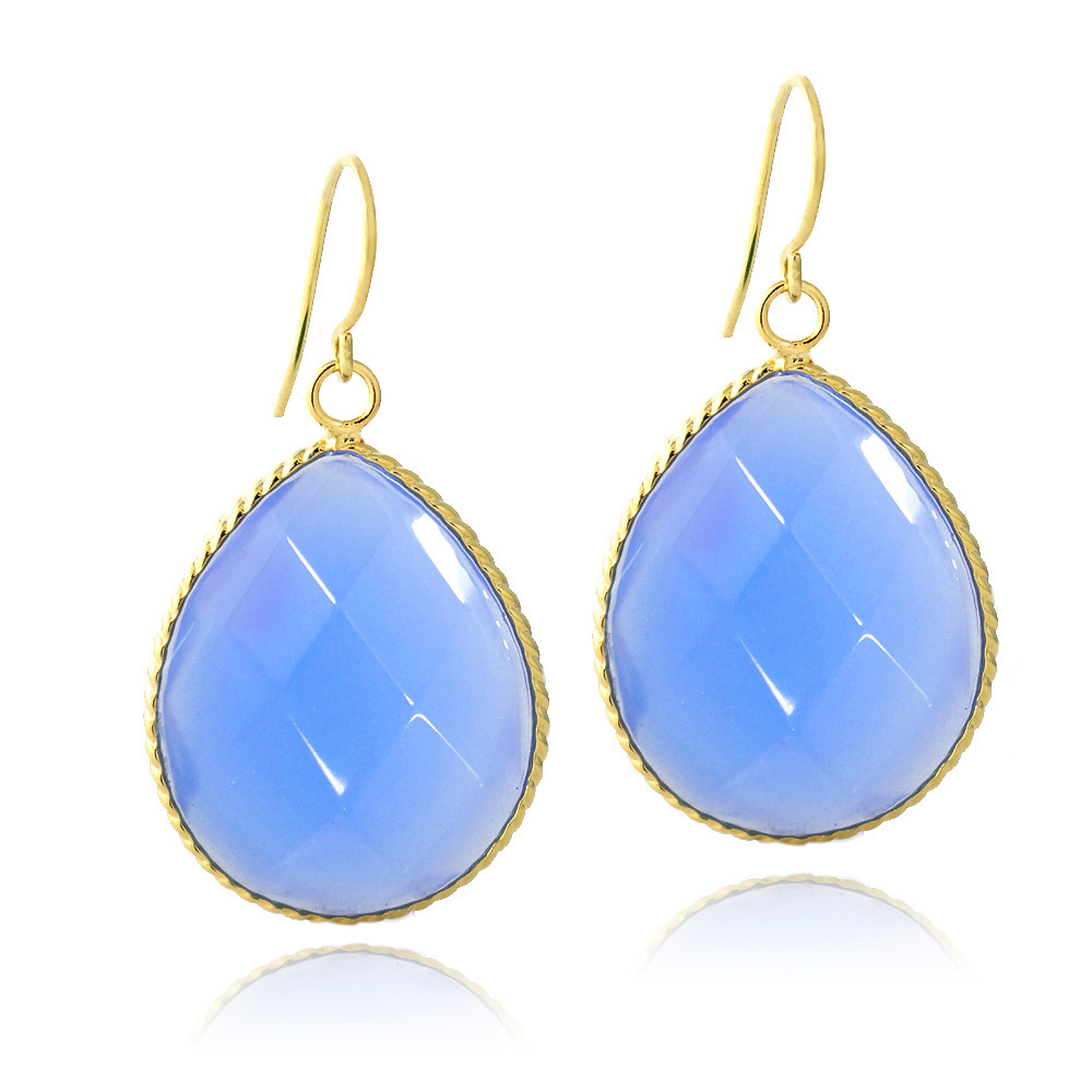A splash of unforgettable sparkle gets you noticed. Try these ritzy dangle earrings featuring faceted briolette cut royal blue glass teardrops. The earrings are plated with 18K gold and secured with fishhook backs. Product Details Metal Type: brass Metal Stamp: no-metal-stamp Width: 21.77 mm Backfinding: fishhook Stone Details:
